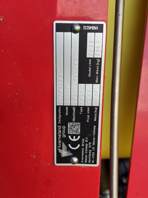 Kverneland iXter B 13, Baujahr 2013, 1300lt Füllmenge,180 lt Frischwassertank,18lt Handwaschtank, Spritzbalken 15m HSO iXter B, 5 Sectionen, Hydraulikset HOSA Basic 3, Pumpe 200lt/min, Computer+Regler FMC 5 TB, Durchflußmesser/Drucksensor, Flowmeter ¾“ FASED OUT, Einspühlbehälter Anb.B, Straßenbeleuchtung STVO, Düsen Lechler IDKN Lechler blau SW8, Füllanschluß Klarwassertank, Hochdruckrührwerk, Harnstoffsieb, Ansaugschlauch, Gestängebeleuchtung, Gelenkwelle, 1A-Zustand