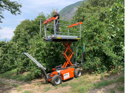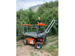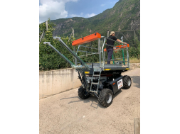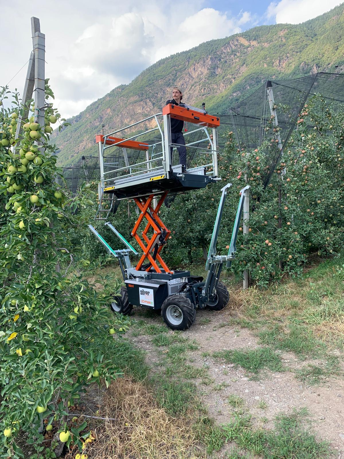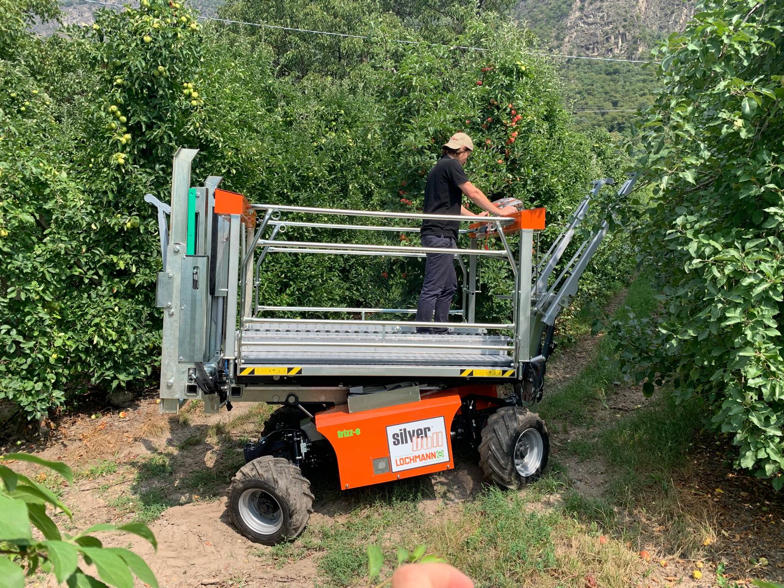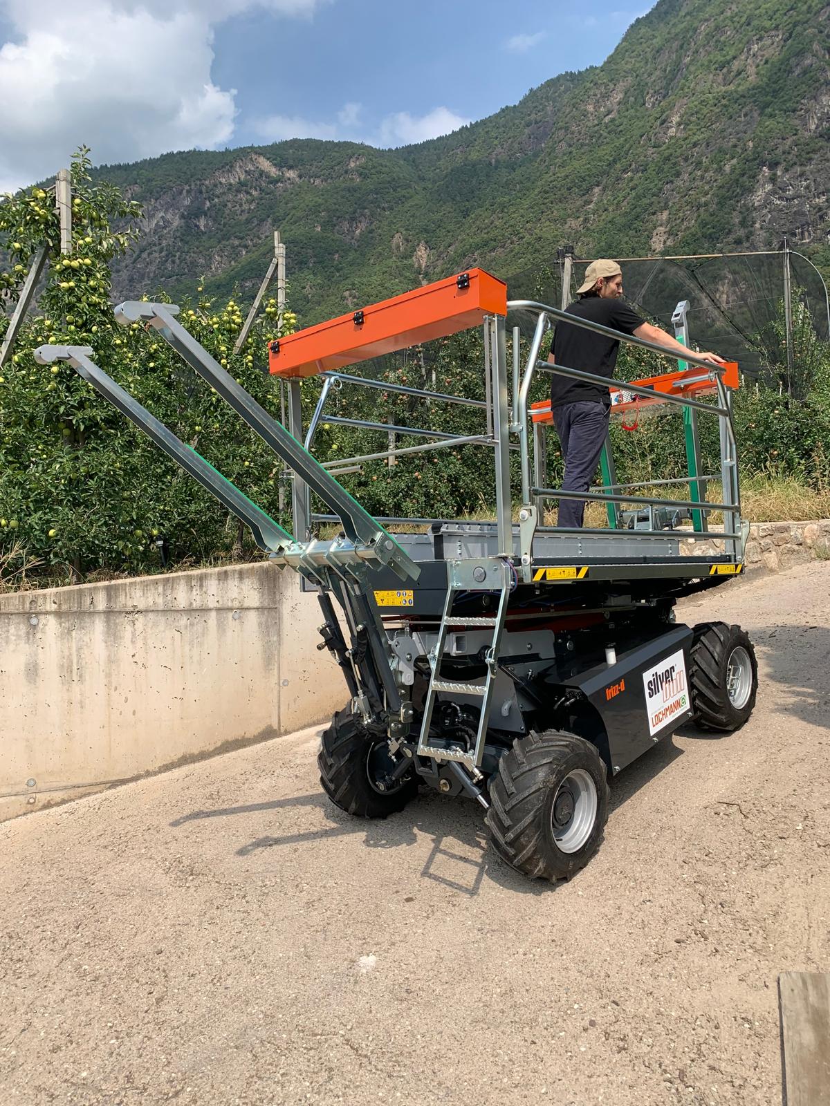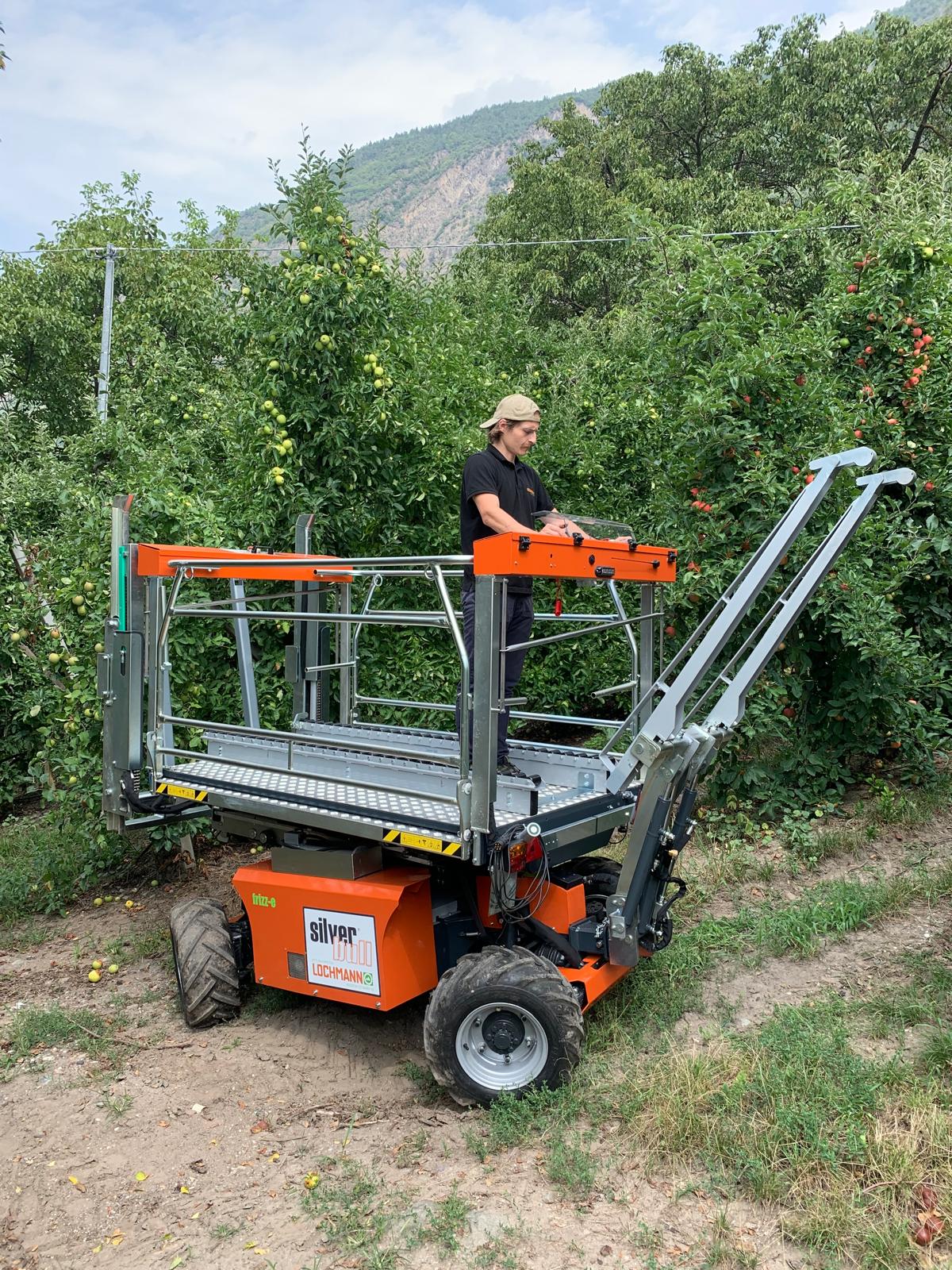 Silverbull e-rexx, elektrische Hebebühne Lochmann Silverbull, Zweiradantrieb mit autom. Differenzialsperre und Negativbremse auf der Hinterachse, Hangausgleich in seitlicher Richtung mit autom. Hangausgleich (15%), elektrisch verstellbare Podeste der Arbeitsbühne, Drehstrom Motor 3kw, Batterien 24V 390 Ah mit integriertem Ladegerät, aktive Pendelsperre auf der Vorderachse für mehr Stabilität, Bedienpult mit Automatik-Funktion (intervall-Regelung), Bereifung 26x12,00-12PR8,schwenkbare Kippgeländer, Vorderrad-Lenkung mit 40° Einschlag Sonderausstattung: Frontstapler, Heckstapler, Rollenbahn für Großkiste, Allrad-Antrieb, Steuerung Schubladen und NOT Aus oder Start – Stop Schalter hinten zusätzlich, automatische Lenkung über Ultraschall-Sensorik, Allradlenkung, Separatlenkung, Hangausgleich Fahrtrichtung mit automatischem Hangausgleich (20%), Radio mit USB Stick