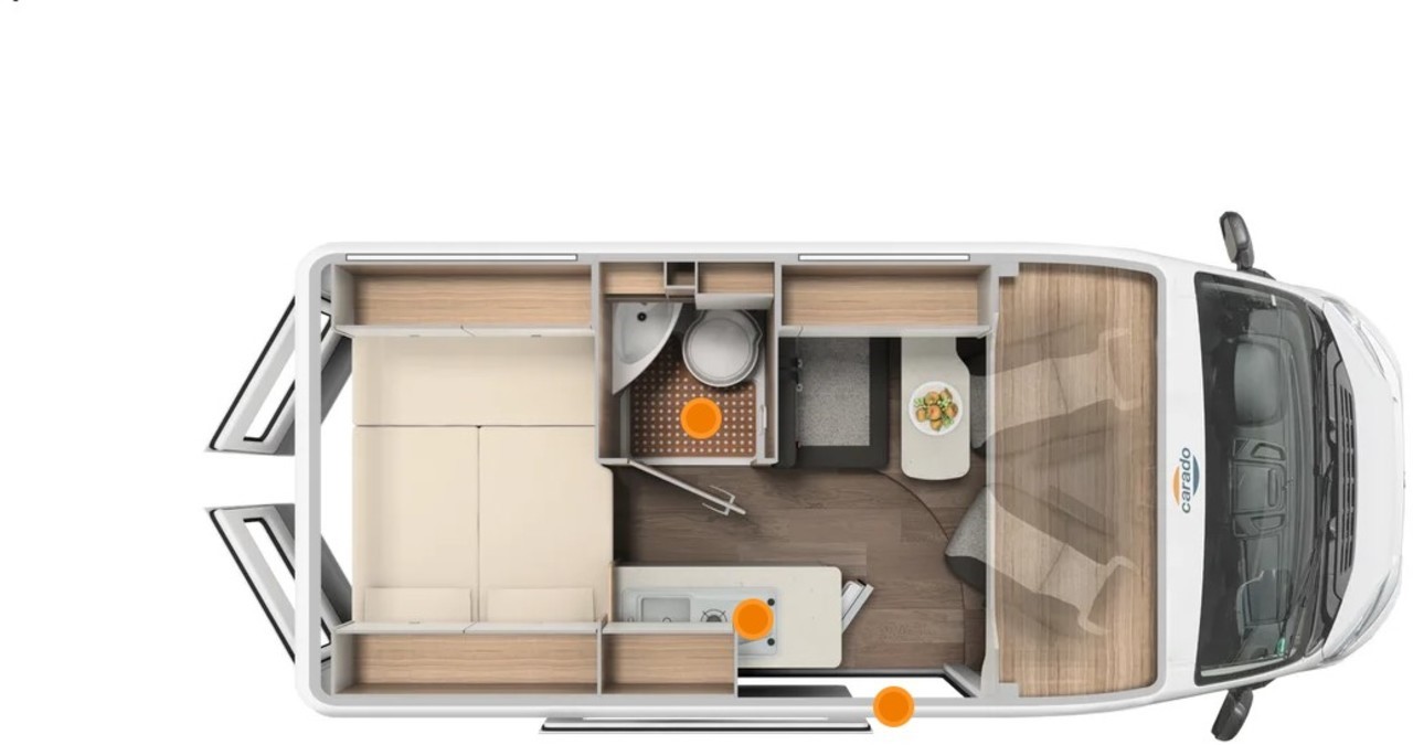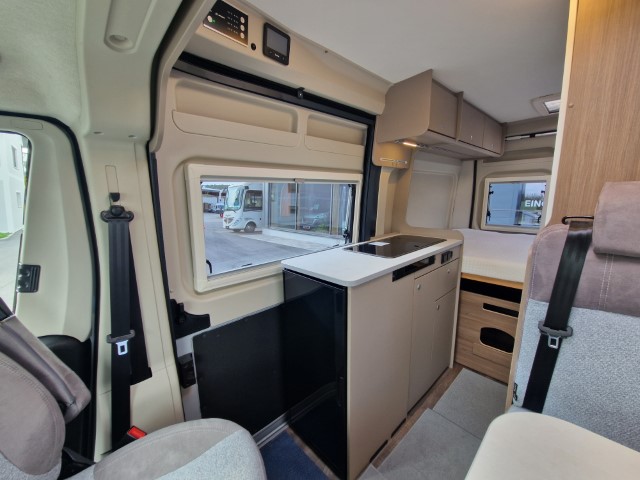 Carado CV540 mit Querbett auf Fiat Ducato 140PS 2,2l, Erstzulassung 3/2025, Kilometerstand ca. 7.000km abgelesen, Motorklimaanlage Fahrerhaus, Multifunktionslenkrad, LED Tagfahrlichtstreifen, Scheinwerfer mit schwarzem Rahmen, 90l Dieseltank, lackierte Stoßfänger vorne in campovolo, Chassisaußenfarbe campovolo grau, Stylepaket (Lederlenkrad und Schaltknauf in Leder, Armaturentafel mit Applikationen Techno Trim, Kühlergrill schwarz glänzend mit Chromstreifen, 16“ Alufelgen, Traction+ mit Hill Descent Control, Captain Chair Sitze, Beifahrersitz höhenverstellbar, Außenspiegel elektrisch und beheizt, Radiovorbereitung mit Lautsprecher mit DAB, Vorbereitung Rückfahrkamera, Abklebung Pro Carado alternativ, Anhängekupplung, Truma EH, Navigation Zenec 3776 mit Rückfahrkamera - NEUWERTIG Werksgarantie