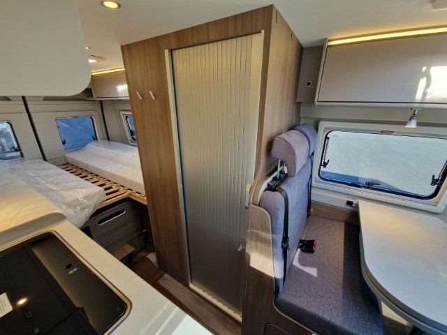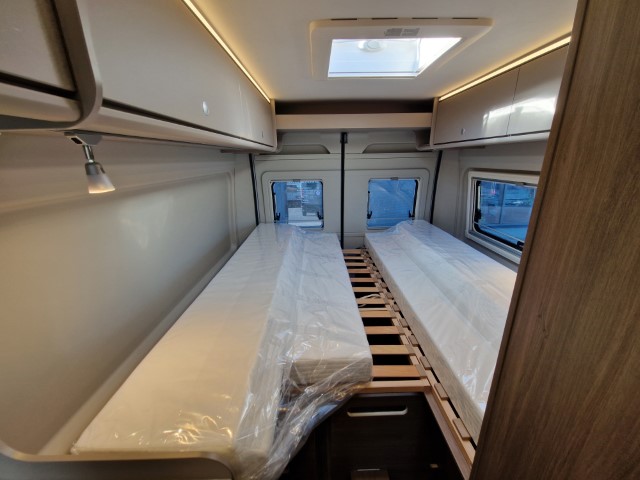 Carado CV640 Entry Pro+ Edition mit Einzelbetten und Variobad auf Fiat Ducato 2,2l 140PS, Automatik, Optikpaket 1 (Stoßfänger lackiert, Skid Plate glänzend schwarz, Nebelscheinwerfer), Dieseltank 90l, Digital Paket CV (Rückfahrkamera mit Parklinien, automatische Fahrerhausklimaanlage, induktives Smartphone Ladefunktion, 10“ Radio Navigation, digitale Instrumentenanzeige), Chassisfarbe weiß, Rahmenfenster, Beklebung Carado alternativ, Schriftzug Pro+, Abwassertank isoliert und beheizt, Holzrost in Dusche, digitales Bedienteil für Combi Heizung, Dieselheizung Combi 4, DAB Antenne integriert im Außenspiegel, Vorbereitung Dieselheizung, Abwassertank isoliert und beheizt, Holzrost in Dusche, digitales Bedienteil für Combi Heizung, Combiheizung Dieselheizung, Chassis Paket (elektrische Feststellbremse, elektrisch beheizbare und anklappbare Außenspiegel, Einparkhilfe, Toter Winkelassistent), Co-Driver Paket (Regen- und Lichtsensor, Co-Driver Paket inkl ACC mit Stop & Go, Fahrspurzentrierung, Stauassistent, automatisches Bremssystem mit Fußgängererkennung, Spurhalteassistent, Verkehrszeichenerkennung, Fahrermüdigkeitserkennung, intelligenter Geschwindigkeitsassistent), Optikpaket 2 (Lederlenkrad und Schaltknauf in Leder, Luftauslässe Silber Techno Trimm, 16“ Alufelgen), Markise 4m, Faltverdunkelung Fahrerhaus, Basicpaket (Dachhaube Midi Heki 70 x 50 über Sitzgruppe, Duschausstattung, Fenster im Bad, Kleiderstange in Nasszelle, breite Einstiegsstufe, Drehplatte für Tischerweiterung an der Sitzgruppe), LED Beleuchtung über den Dachstauschränken, Panoramafenster über Fahrer- und Beifahrersitz, Heckdachstauschrank umlaufend), Wohnwelt grau, Möbel Visby Oak fabriksneu Ausstellungswagen