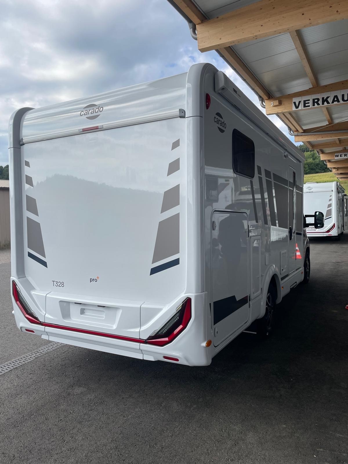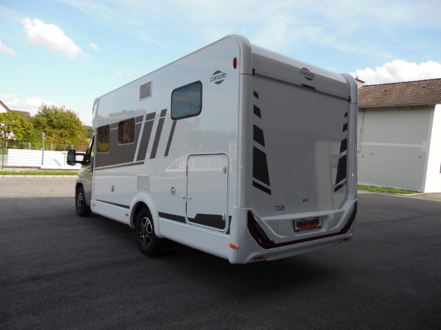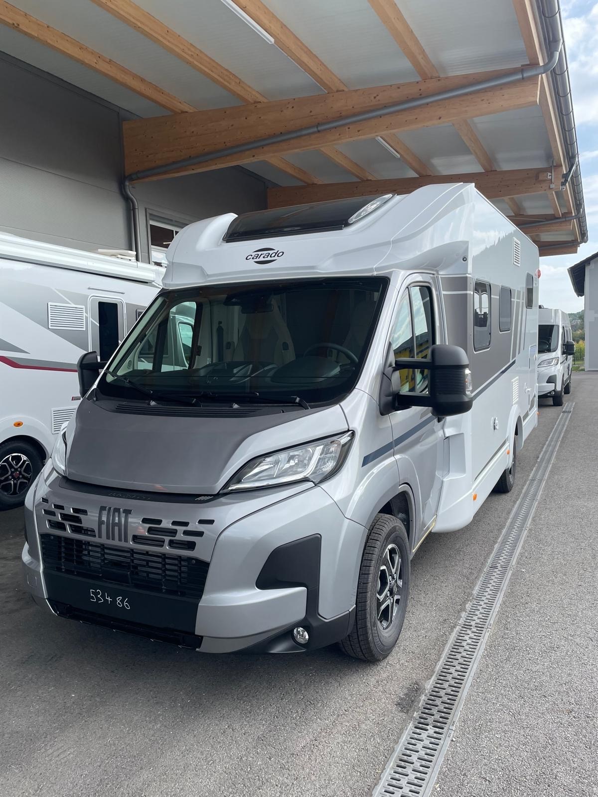 Carado T328 mit Einzelbetten und Garage Pro+ MJ26 auf Fiat Ducato 2,2l 140PS Automatik, Fahrerhausklimaanlage, Optik Paket 1 (Stoßfänger lackiert, Skid Plate schwarz glänzend, Nebelscheinwerfer), Optikpaket 2 (Lederlenkrad und Schaltknauf in Leder, Armaturentafel mit Apllikationen Techno Trim, 16“ Alufelgen), Basicpaket (Panoramadachhaube 70 x 50 cm, Klarglasdachhaube 40 x 40 cm, Fliegengittertür, Komforteingangstür mit Fenster und Verdunkelung, Bridge Light), Chassisaußenfarbe artense grau metallic, Design Applikation Heck, Fenster in Fronthaube, Rahmenfenster, 2. Außenstauraumklappe, Beklebung Carado alternativ, Abwassertank isoliert, Schriftzug Pro+, Markise 4m weiß, Faltverdunkelung Fahrerhaus, 90l Dieseltank, Bettenbau Sitzgruppe, Bettenbau Einzelbett zu Doppelbett, Hubbett, Holzrost in Dusche, Heizung Combi 6EH, Kabelvorbereitung Rückfahrkamera, Safety Paket inkl ACC (adaptiver Tempomat, automatisches Bremssystem mit Fußgängererkennung, Regen- und Lichtsensor, Spurhalteassistent, Verkehrszeichenerkennung, Fahrermüdigkeitserkennung, intelligenter Geschwindigkeitsassistent), Stoff braun, Möbel Visby Oak fabriksneu Ausstellungswagen