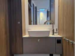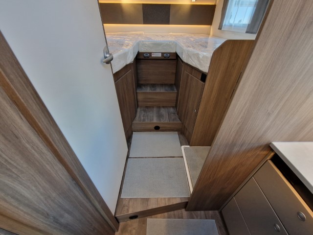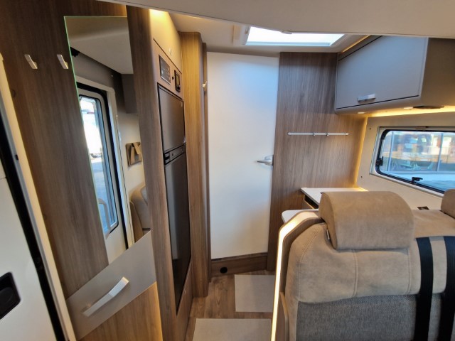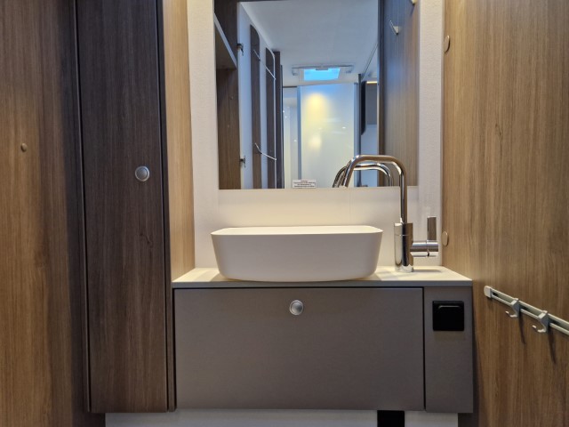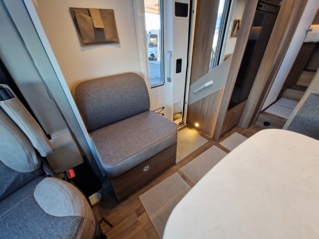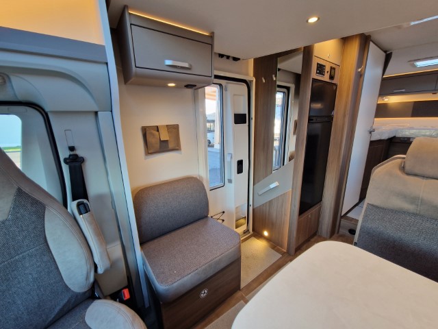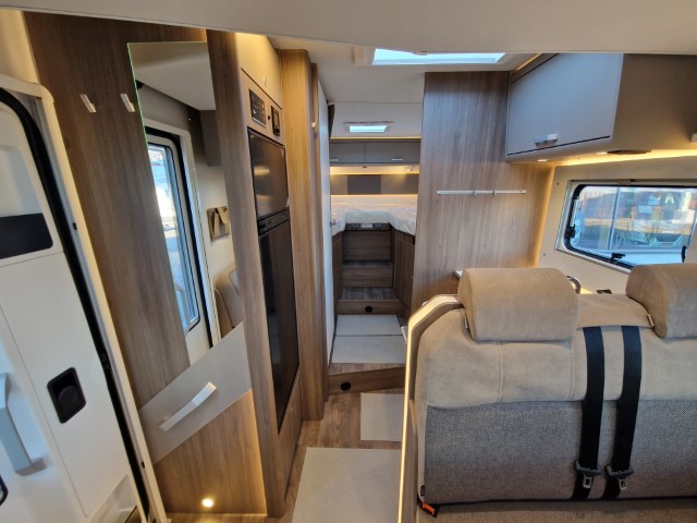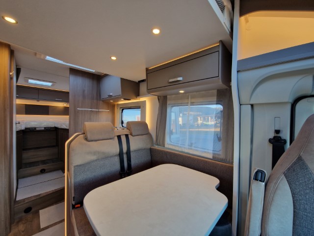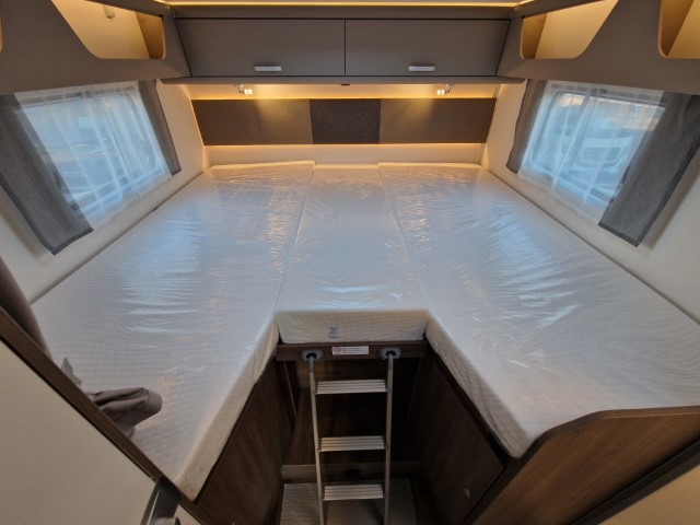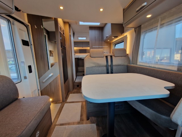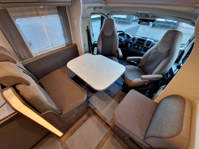 Carado T447 mit Einzelbetten und Garage Pro+ Paket auf Fiat Ducato 140PS, 3,5to, Automatik, Optik Paket 1 (Stoßfänger lackiert, Skid Plate schwarz glänzend, Nebelscheinwerfer), Optikpaket 2 (Lederlenkrad und Schaltknauf in Leder, Armaturentafel mit Apllikationen Techno Trim, 16“ Alufelgen), Basicpaket (Panoramadachhaube 70 x 50 cm, Klarglasdachhaube 40 x 40 cm, Fliegengittertür, Komforteingangstür mit Fenster und Verdunkelung, Bridge Light), Chassisaußenfarbe artense grau metallic, Design Applikation Heck, Fenster in Fronthaube, Rahmenfenster, 2. Außenstauraumklappe, Beklebung Carado alternativ, Abwassertank isoliert, Schriftzug Pro+, Markise 4,5m weiß, Faltverdunkelung Fahrerhaus, großer Kühlschrank 156l mit seperatem Frosterfach 29l, Safety Paket inkl ACC (adaptiver Tempomat, automatisches Bremssystem mit Fußgängererkennung, Regen- und Lichtsensor, Spurhalteassistent, Verkehrszeichenerkennung, Fahrermüdigkeitserkennung, intelligenter Geschwindigkeitsassistent), 90l Dieseltank, Bettenbau Einzelbett zu Doppelbett, Hubbett, Holzrost in Dusche, Heizung Combi 6EH, Stoff braun, Möbel Visby Oak fabriksneu Ausstellungswagen