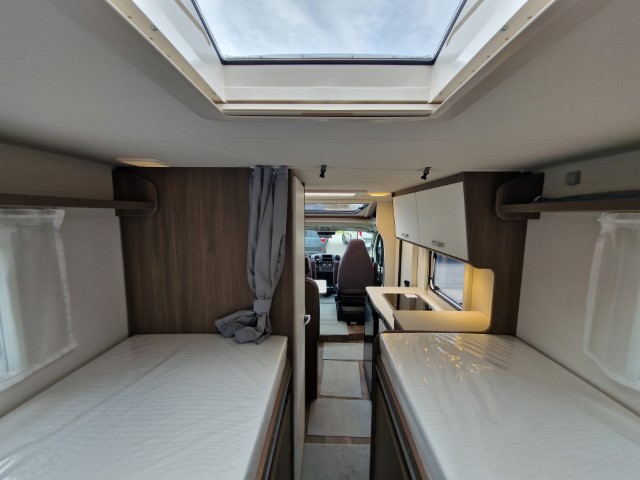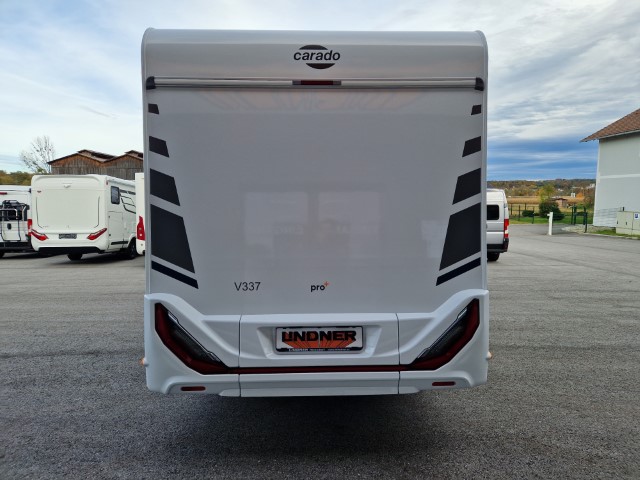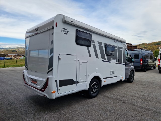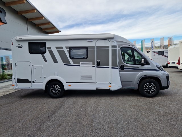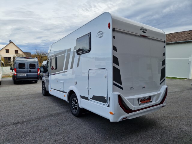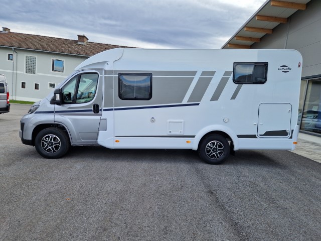 Carado V337 MJ2026 Pro+ Edition mit Einzelbetten und Garage auf Fiat Ducato 140PS, Automatik, Fahrerhausklimaanlage, Optik Paket 1 (Stoßfänger lackiert, Skid Plate glänzend schwarz, Nebelscheinwerfer), Chassisfarbe artense grau metallic, Fenster in Fronthaube, 2. Außenstauraumklappe, Abwassertank isoliert, Schriftzug Pro+, Markise 4m weiß, Faltverdunkelung Fahrerhaus, Sonderfarbe Dachstauschrankklappen und Türen, Optik Paket 2 (Lederlenkrad und Schaltknauf in Leder, Luftauslässe silber Techno Trimm, 16“ Alufelgen), Basicpaket (Panoramadachhaube 70 x 50cm über Sitzgruppe, Klarglasdachhaube 40 x 40cm, Spiegel mit Garderobenhaken, Bridge Light, Fliegengittertür), Bettenbau Einzelbett zu Doppelbett, Holzrost in Dusche, Combi 6EH, Kabelvorbereitung Rückfahrkamera, Safety Paket inkl ACC (adaptiver Tempomat, automatisches Bremssystem mit Fußgängererkennung, Regen- und Lichtsensor, Spurhalteassistent, Verkehrszeichenerkennung, Fahrermüdigkeitserkennung, intelligenter Geschwindigkeitsassistent), Wohnwelt grau, Visby Oak fabriksneu Ausstellungswagen