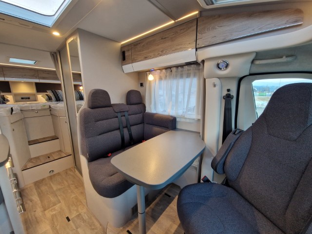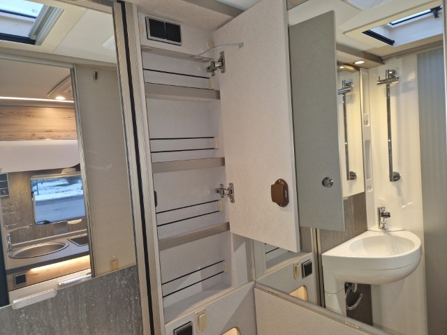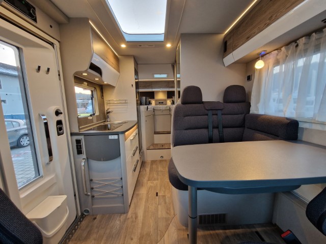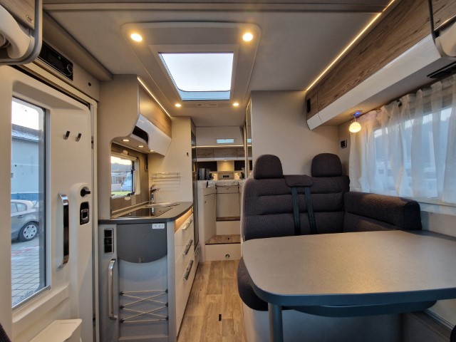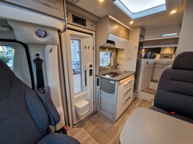 Hymer Exsis T474 mit Einzelbetten und Garage auf Fiat Ducato 2,2l 140PS, Automatik, 90l Dieseltank, Stylepaket (Skid Plate schwarz, Spoiler in Wagenfarbe, Nebelscheinwerfer, Aluapplikationen, Lederlenkrad u Schaltknauf in Leder, 16“ Alufelgen), Chassisfarbe lanzarote grau, Außenfarbe Aufbau weiß, Fahrkomfortpaket (9“ Navigation mit Rückfahrkamera, Tacho digitales Display, Fahrerhausklimaanlage automatisch, Ablage für Smartphone Wireless Charging), GFK Dachbeschichtung, Truma Combi 6EH, Wohnkomfortpaket (Ambientebeleuchtung, Spannbettlaken Heckbetten, Kissen, Einlegeboden in Dusche, Zusatzsteckdosen), Komforteingangstür mit Fenster, Bettenbau Komfort-L-Sitzgruppe, Gasauszugsschlitten, Dachstauschränke über Heckbett anstelle offener Ablage, Bettenbau Einzelbett zu Doppelbett, Sicherheitsschloss Aufbautür, LED Scheinwerfer inkl LED Tagfahrlicht, Abwassertank isoliert und beheizt, Möbel Sauvignon Oak Tip Printed, Stoff Korfu fabriksneu Ausstellungswagen