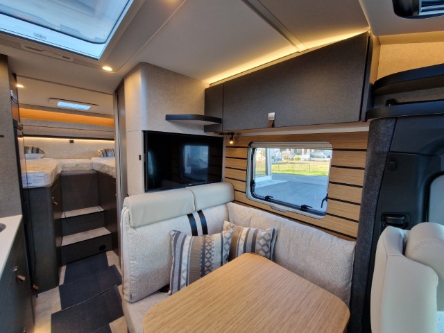Hymer MLT 570 Xperience mit Einzelbetten und Garage auf Mercedes 417 CDI 170PS Heckantrieb, Gewichtsvariante 3,5to, Xperience Paket (Außenfarbe Fahrerhaus tenoritgrau metallic, Lederlenkrad, Markise inkl dimmbarer LED Beleuchtung 4m, aktiver Abstandstempomat Distronic Plus mit Multifunktionslenkrad, Bettenbau Komfort L Sitzgruppe inkl Zusatzpolster, Designabklebung Xperience, Nebelscheinwerfer, Verkehrszeichen Assistent, Komfort-L-Sitzgruppe, Schlafsystem mit Tellerfederrost Heckbett, Zusatzpolster Einzelbetten, Kissen, 32“ Flachbildschirmhalter, 32“ Smart LED TV mit integrierten Lautsprecher, Fernbedienung, DVD-Laufwerk, Hymer Smart Multimedia-System inkl Receiver, 10,25“ Mbux Multimediasystem mit Rückfahrkamera, Sprachsteuerung, Touchscreen inkl Navigation & Smartphone Integration, Hymer Connect Sensorenpaket, 1 x Gasfüllstandssensor, 1x Temperatursensor, 2x Kontaktsensor, Komfort-Einganstür mit Fenster, Verdunkelungsrollo, integriertem Mülleimer, 16“ Alufelgen mit Ganzjahresreifen, Lederlenkrad, Automatik 9-G-Tronik), Fernlichtassistent Abblendautomatik, Außenfarbe Aufbau weiß, Sicherheitsschloß Eingangstür, SOG-Toilettentlüftung, Einlegeboden in Duschwanne, Außendusche, Ambiente Beleuchtung, Toilettentsorgung Ersatzkassette, Spannbettuch Festbett, Steckdosenpaket, Ausstattungslinie Premium (Ablage Smartphone, Dieselheizung, Ladepaket Instrumententafel, LED Scheinwerfer, Fahrerhausklimaanlage automatisch), Winterpaket (Wärmeisolierung Fahrerraum, Sitzheizung Fahrer- und Beifahrersitz, Scheibenwischer Wet Wiper System, Lenkradheizung, Warmluft Zusatzheizung elektrisch), Möbel Native Bamboo, Stoff Valetta fabriksneu Ausstellungswagen