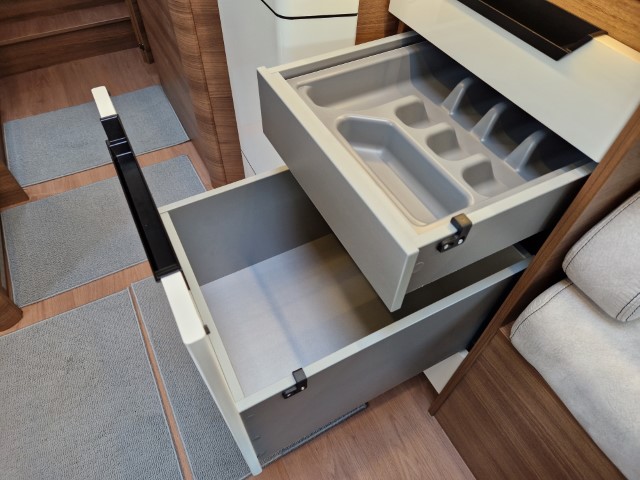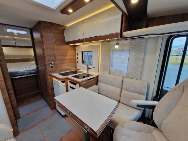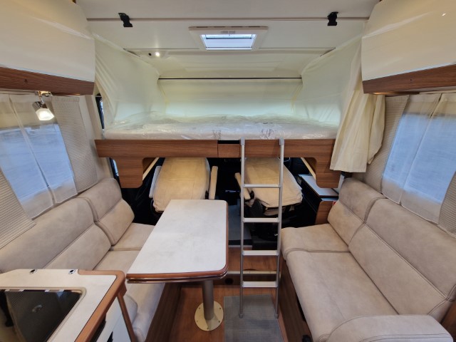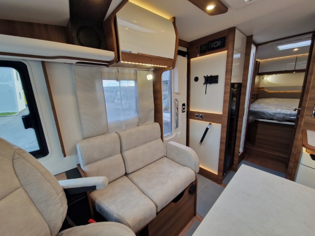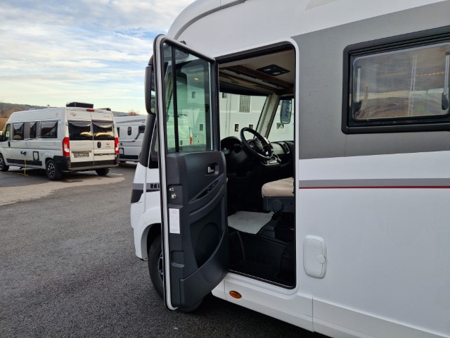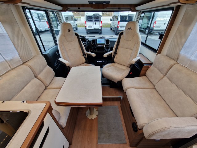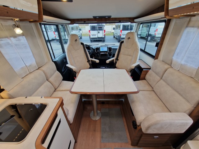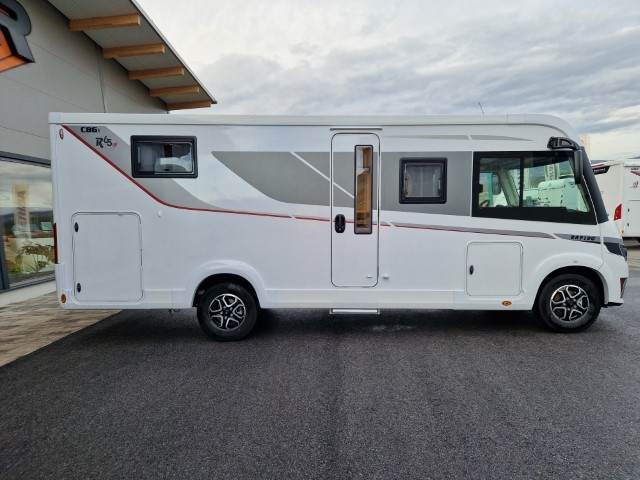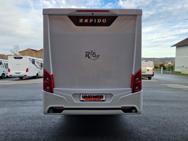 Rapido C86I 65 Jahre Sondermodell mit Queensbett und Garage auf Fiat Ducato 2,2l 140PS, Automatik, Pack Smart (16“ Alufelgen, Lederlenkrad, graue Zierleiste Lüftungsdüsen Armaturenbrett, Multifunktionslenkrad), Pack Select (Faltverdunkelung Fahrerhaus, Wohnraumtür mit 2 Punkt Verriegelung, Fenster und integriertem Mülleimer, Ganzjahresreifen, Fliegengittertür, 2. Schlüssel mit Fernbedienung, Traction+ mit Hill Descent Control), Pack Energy (Lithium Batterie, 150Watt Solarpanel), Pack Lounge (automatische Fahrerhausklimaanlage, Induktionsladegerät für Smartphones, digitales Armaturenbrett), 90l Dieseltank Reifenluftdrucksensoren, elektrische Feststellbremse, 6KW Dieselheizung EH, 9“ Pioneer Navigation mit Rückfahrkamera, Kit Linoleum, 2 Flammenkocher, 2teilige Tischplatte, Hubbett manuell, höhenverstellbares Heckbett, Matratzenschutz, Außendusche, Halogen Scheinwerfer, Außenspiegel Doppellinse, beheizter Abwassertank, Möbel Nacarat, Stoff Alba fabriksneu Ausstellungswagen Fahrzeug ist nicht in Hirnsdorf
