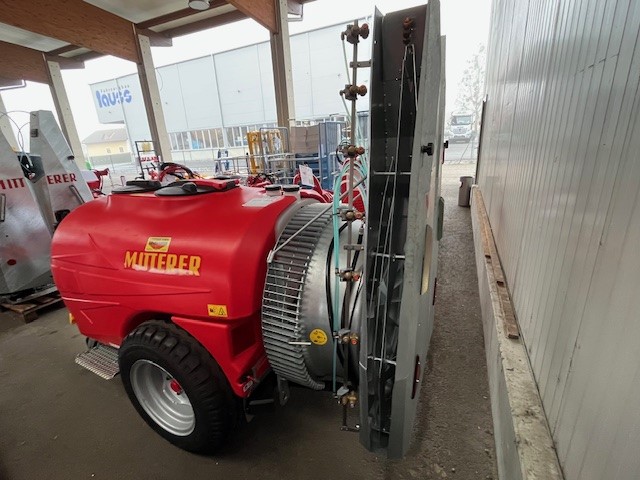 Mitterer 10-81VV gezogenes Sprühgerät, Lenkdeichsel für Unterlenker, IDS 1401 Messingpumpe, Bereifung 12/0.55-16, elektrische Bedienung mit elektrischen Druckregler, für 2 Teilbreiten, digitale Druckanzeige, rotierender Einspühlpilz Edelstahl, Weitwinkelgelenkwelle