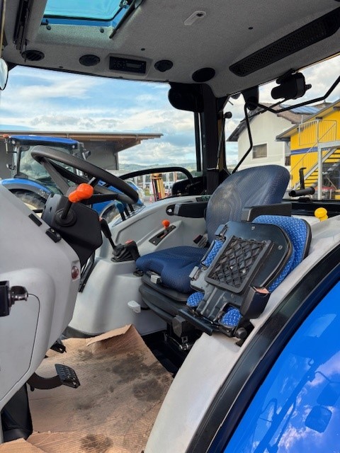 New Holland T 4.75 S, Baujahr 2022, 75 PS, 600 Betriebsstunden, 12/12 Wendegetriebe, 40 km/h, 3 Steuergeräte doppelwirkend, 3 Zwischenachssteuergeräte mit elektrischer Weiche und 4 Anschlüsse nach vorne, Klimaanlage, Luftfedersitz, Radio, Fronthydraulik Zuidberg, Drehleuchte, Fanghacken, Bereifung 420/85R30, 14.9LR20, sehr gepflegt