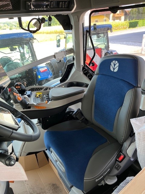 New Holland T 7.230 AC New Gen, 2 Zwischenachssteuergeräte elektronisch, automatische Anhängerkupplung schnell höhenverstellbar, Bolzen 38 mm mit Bedienung aus dder Kabine znd K80 höhenverstellbar, Axialkolben-Verstellpumpe mit max. 170l/min Förderleistung, Umkehrlüfter elektronisch geregelt mit erweiterter Funktion für die Motorbremse und Motor Stufe 5, 210 A Lichtmaschine, hydraulische Unterlenkerstabilisatoren, Semi-aktiv gefederte Kabine (hydraulische Federelemente für Hangausgleich, Schwingungstilgung, Wank-Stabilisierung, Progression im Bereich der Endanschläge, in 3 Stufen am Monitor einstellbar), Power Beyond Anschlussplatte ohne Kupplungen, Motorstaubremse, Kl. 3, Isobus, Auto Ccommand Getriebe, elektrohydraulische Steuergeräte und leistungsstarke Hydraulik 150l/min, 4-fach-Zapfwelle 540/540E und 1000/1000E, elektronische Parksperre, Horizon Ultra Kabine mit Klimaanlage, Beifahrersitz und Kabinenfederung, 4 Premium Lautsprecher, IntelliView 12 - intuitiver Touchscreen Monitor, Vorgewendemanagement, ABS Anhängersteckdose 12V, Fronthydraulik und Frontzapfwelle mit 2 zusätzlichen Leitungen nach vorne für Zwischenachssteuergeräte, IntelliSteer Spurführungssystem mit Cygnus Empfänger Level 3, 4 LED Arbeitsscheinwerfer in der Motorhaube und 4 seitliche LED Arbeitsscheinwerfer und 2 LED Arbeitsscheinwerfer auf den Heckkotflügeln, CentreView Frontmonitor mitschwenkend fix montiert (auf der Lenkradnarbe), erweiterter Frontscheibenwischer 240°, Fronthubwerk-Management inkl. elektrischer Anschlüsse vorne (7 und 3 polige Steckdose 12V, 30A), HTS 2 Vorgewendemanagement mit GPS Trigger und IntelliTurn Pro (automatisches Auslösen des Vorgewendemanagements und automatische Wendevorgang, 360 Grad Lichtpaket (14 LED Scheinwerfer im dach, davon 6 vorne und 8 hinten), Tech Pack (IntelliView 12 Monitor in der Armlehne, Vorbereitung für 2. Monitor, Telemetrie Freischaltung (nutzbar nach Zustimmung der EULA Datenschutzvereinbarung bei Übergabe), P&CM 4G Modem, erweitertes Vorgewendemanagement HTS II Und GPS Trigger und Intellturn ISOBUS, Intellisteer Vorbereitung mit Schnelllenkfunktion, PLM 3 und 5 Jahre NTRIP, Betriebsanleitung