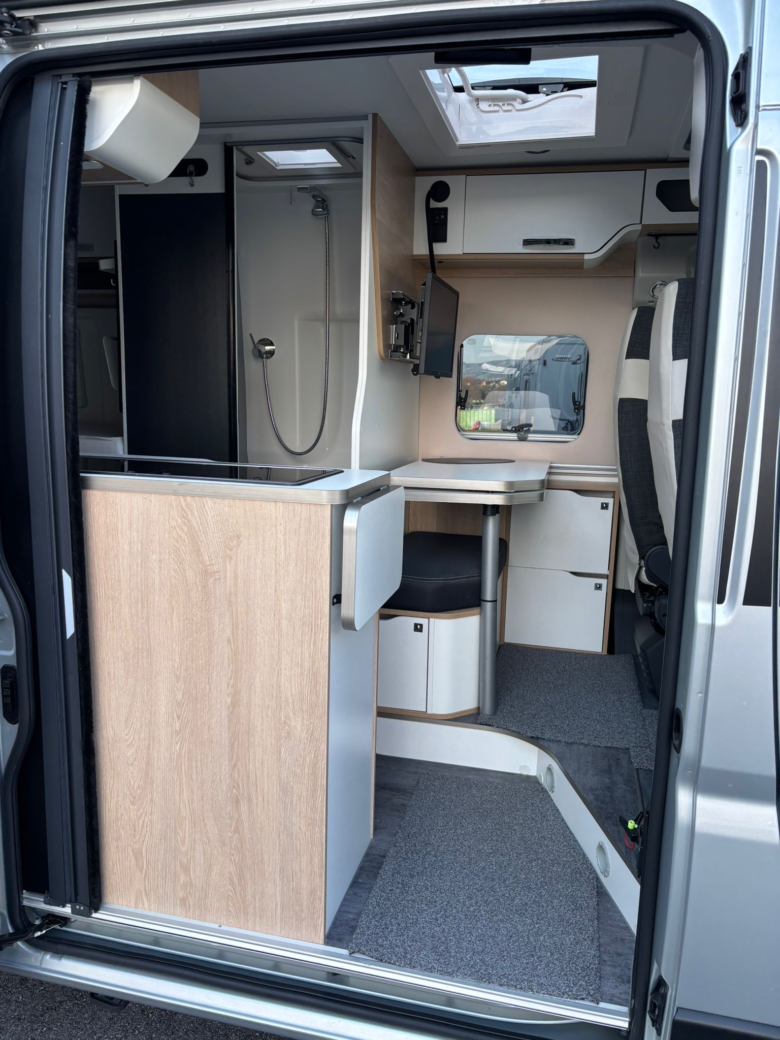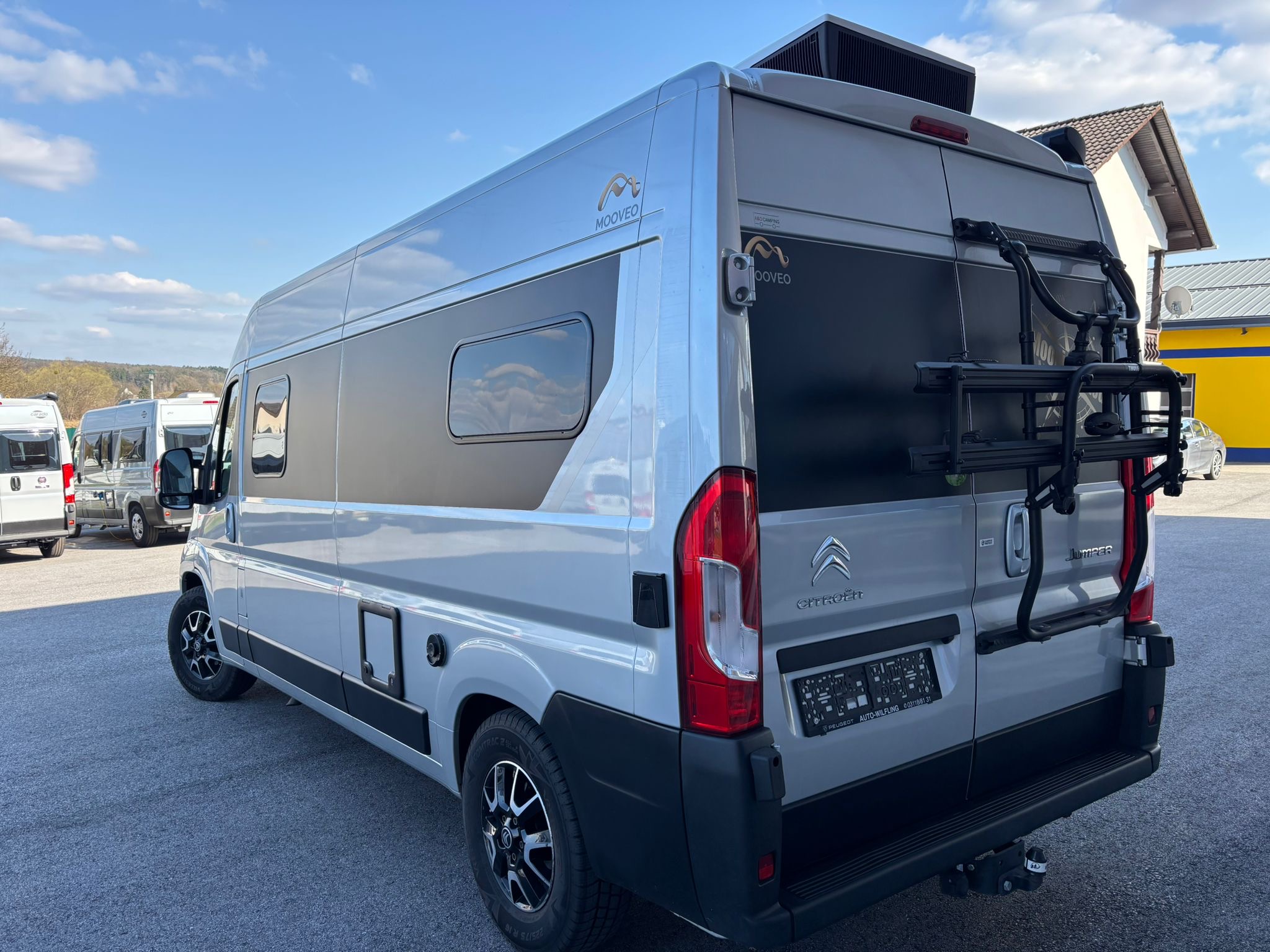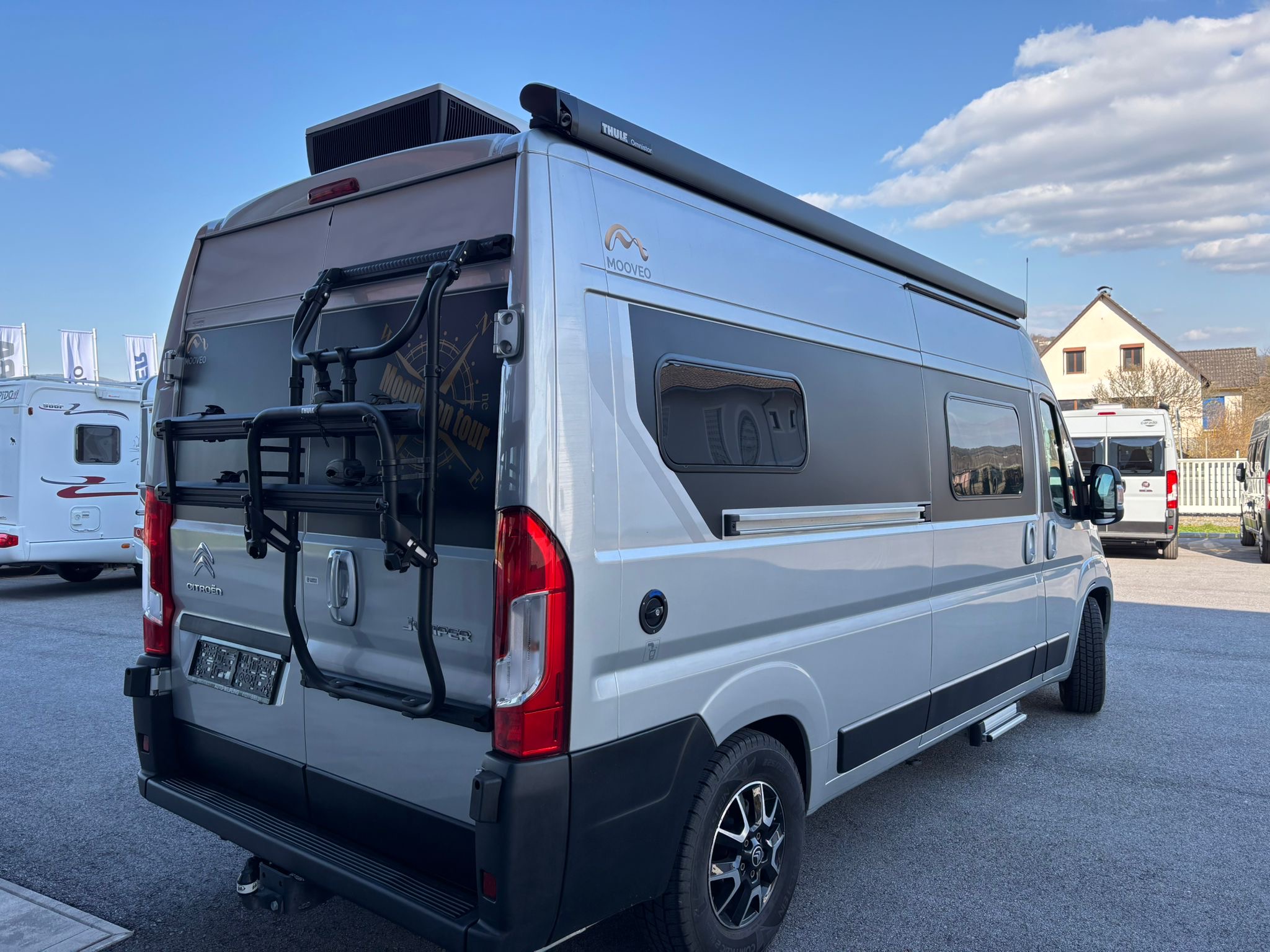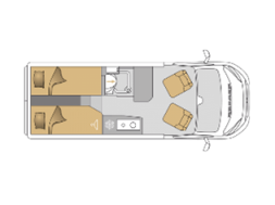 Campervan Moovea 60 EB mit Einzelbetten, auf Citroen 140PS, Erstzulassung 04/2022, Schaltgetriebe, Kilometerstand ca 40.000km abgelesen, Fahrerhausklimaanlage, TV, SAT Anlage, Aufbauklimaanlage 230V, Anhängekupplung, Markise, Aussenlackierung silber metallic, Alufelgen, Navigation mit Rückfahrkamera, Fahrradhalter 2er (ohne Ebike), Aussendusche 4 Personen Zulassung 2 Schlafplätze