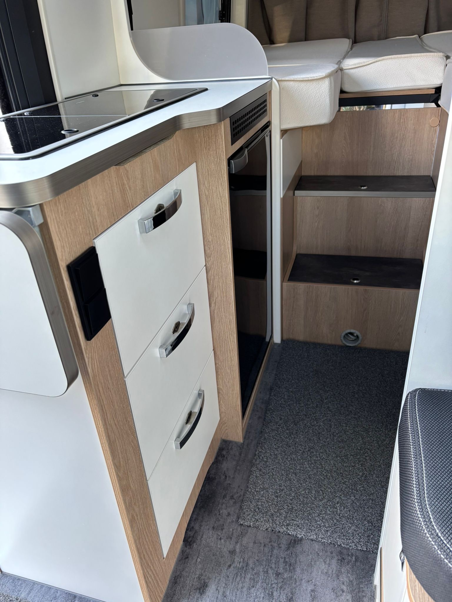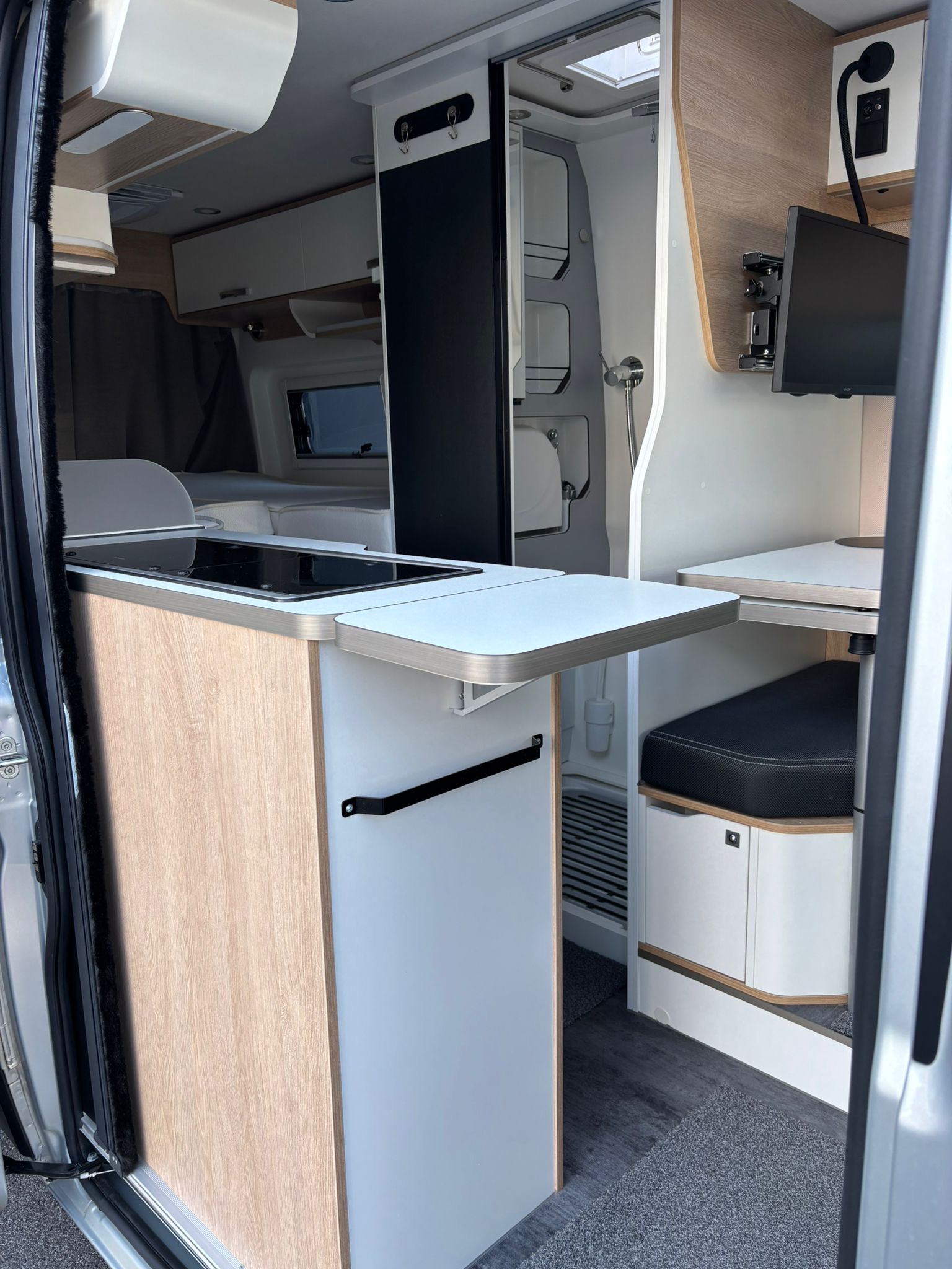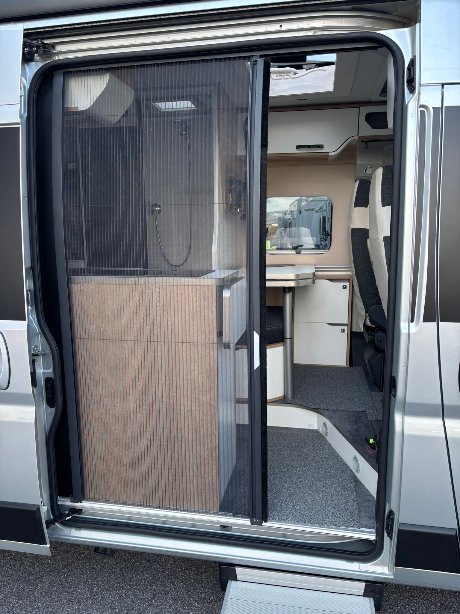 Campervan Moovea 60 EB mit Einzelbetten, auf Citroen 140PS, Erstzulassung 04/2022, Schaltgetriebe, Kilometerstand ca 40.000km abgelesen, Fahrerhausklimaanlage, TV, SAT Anlage, Aufbauklimaanlage 230V, Anhängekupplung, Markise, Aussenlackierung silber metallic, Alufelgen, Navigation mit Rückfahrkamera, Fahrradhalter 2er (ohne Ebike), Aussendusche 4 Personen Zulassung 2 Schlafplätze