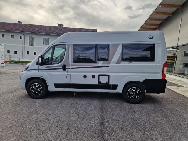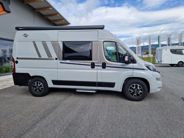 Carado CV540 mit Querbett auf Fiat Ducato 140PS 2,2l, Erstzulassung 3/2025, Kilometerstand ca. 7.000km abgelesen, Motorklimaanlage Fahrerhaus, Multifunktionslenkrad, LED Tagfahrlichtstreifen, Scheinwerfer mit schwarzem Rahmen, 90l Dieseltank, lackierte Stoßfänger vorne in campovolo, Chassisaußenfarbe campovolo grau, Stylepaket (Lederlenkrad und Schaltknauf in Leder, Armaturentafel mit Applikationen Techno Trim, Kühlergrill schwarz glänzend mit Chromstreifen, 16“ Alufelgen, Traction+ mit Hill Descent Control, Captain Chair Sitze, Beifahrersitz höhenverstellbar, Außenspiegel elektrisch und beheizt, Radiovorbereitung mit Lautsprecher mit DAB, Vorbereitung Rückfahrkamera, Abklebung Pro Carado alternativ, Anhängekupplung, Truma EH, Navigation Zenec 3776 mit Rückfahrkamera - NEUWERTIG Werksgarantie