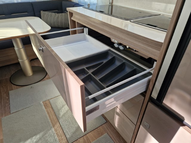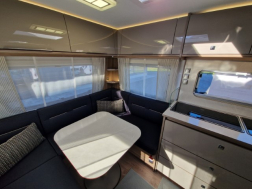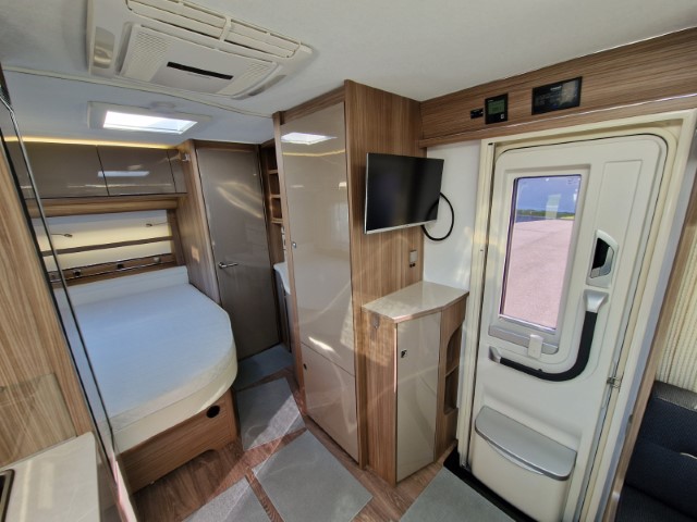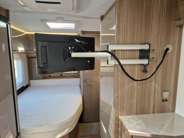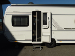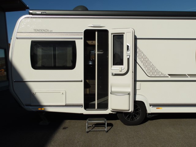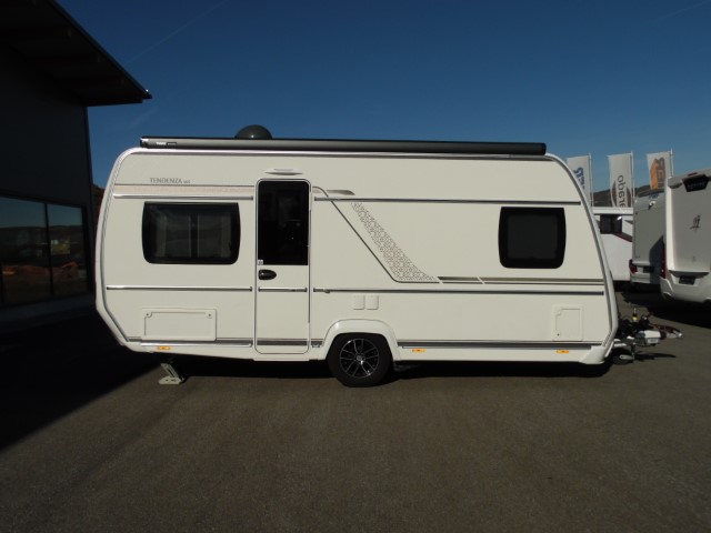 Hobby Tendenza 465 mit französischem Bett, Erstzulassung 2023, Mover elektrisch, Autarkpaket, Vorzelt, Markise, Radhalter, Citywasseranschluss, Universalsteckdose, TV, SAT Anlage, Dachklimaanlage Dometic 230V, Teppichboden, neuwertig