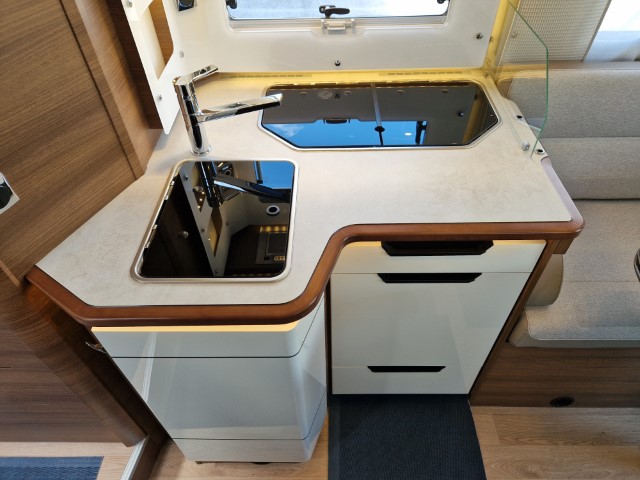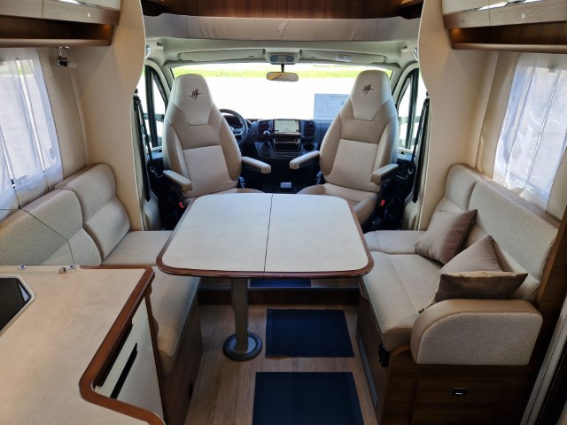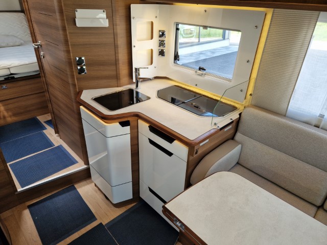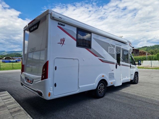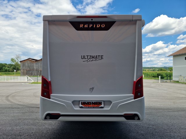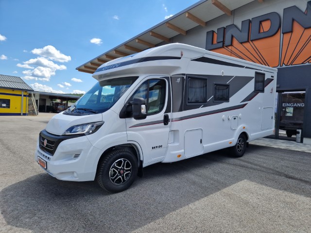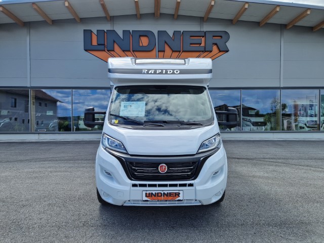 Rapido 696F mit Queensbett und Garage Ultimate Line auf Fiat Ducato 2,2l 140PS, Erstzulassung 12/2024, Kilometerstand ca 6.000km abgelesen, Automatik, ESC, ASR, ROM, Berganfahrhilfe, Stabilisierungssystem bei Seitenwand, Anhängerstabilitätssystem, automatisches Bremsen nach Kollision, 2. Schlüssel mit Fernbedienung Plip, elektrisch verstellbare und beheizbare Außenspiegel, höhenverstellbare, drehbare Fahrerhaussitze mit 2 verstellbaren Armlehnen, Rückfahrkamera mit Bildschirm im Armaturenbrett), Pack Connect (Keyless Start und Entry Öffnen/Schliessen Start ohne Schlüssel, volldigitales Display, Fahrerhausklimaanlage automatisch, Induktionsladegerät für Smartphone, Multimedia Navigation DAB Pioneer 9“ mit Touchscreen, Apple Car Play Android Auto), 16" Alufelgen, Traction+, Fahrerhausklimaanlage Automatik, Lederlenkrad, Multifunktionslenkrad, Stoff Alicante, Möbel Nacarat, Pack Select (Wohnraumtür mit 2-Punkt-Verriegelung mit Fenster und integriertem Mülleimer, Fliegengittertür, Gasflaschenumschaltung automatisch Duocontrol mit Anticrashsystem, Faltverdunkelung Fahrerhaus, Truma Combi 6 EH, beheizter Abwassertank, Betriebsanleitungen, Lithiumbatterie, Ladegerät, Ganzjahresreifen, Sat und Fernseher, Markise, Gummilappen hinten, Schiene in Garage, Zusatzluftfederung, Teppichboden