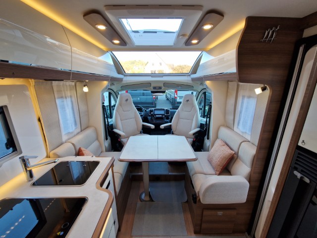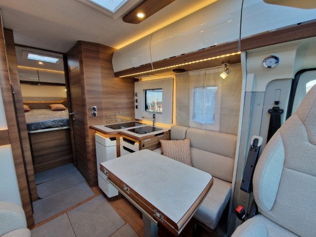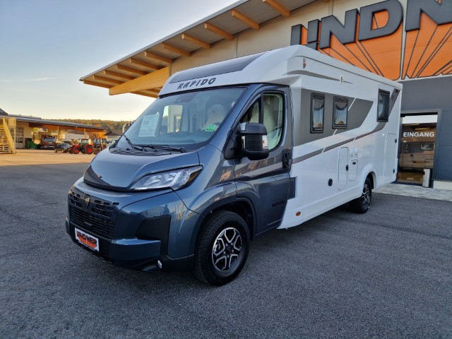 Rapido C86t Jubiläumsmodell mit Queensbett und Garage 65 Jahre auf Fiat Ducato 2,2l 140PS, Automatik, Pack Select, Pack Safety + Abstandstempomat, Pack Lounge+ (automatische Fahrerhausklimaanlage, Induktionsladegerät, digitale Instrumententafel, DAB Multimediastation mit großem 9“ Touchscreen, integrierte Navigation, Apple Car Play, Android Auto Funktionen), Pack Smart (16“ Alufelgen, Lederlenkrad, graue Zierelemente an den Lüftungsschlitzen, Lenkradbedienelemente), 90l Dieseltank, Dieselheizung EH, Navigation und Rückfahrkamera, Multifunktionslenkrad, Abwassertank beheizt, Lederlenkrad u Schaltknauf in Leder, Skyview, Möbel Nacarat, Stoff Bilbao Fahrzeug ist nicht in Hirnsdorf Messe Wels– FAHRZEUG IST NOCH NICHT BESTÄTIGT